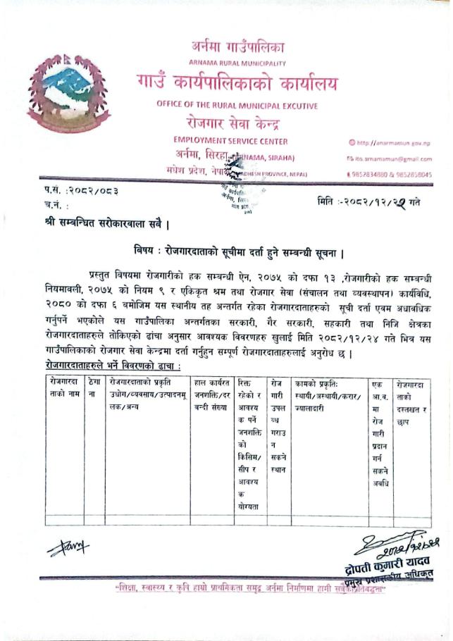 राेजगारदाताकाे सूचीमा दर्ता हुने सम्बन्धि सूचना ।